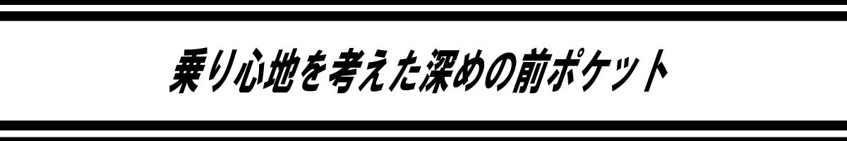 ポケットを深くすることで、物を入れて乗車しても、物が脚の付け根に当たりにくく、ライディング時にも足の動きを妨げにくい設計です。