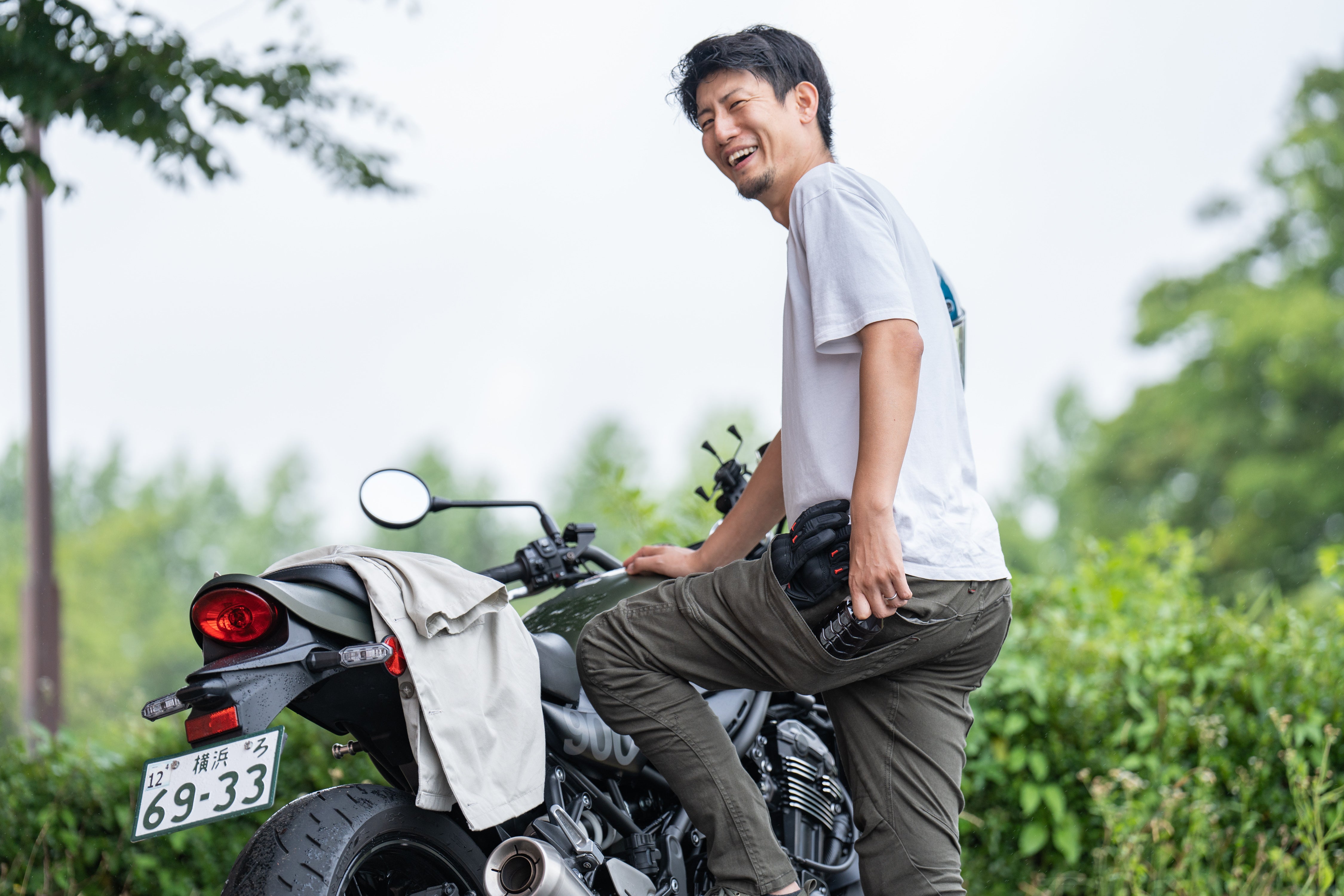 いかがでしょうか?ライディングパンツを穿いているとは思えないほどシーンと一体化しているように見えませんか?