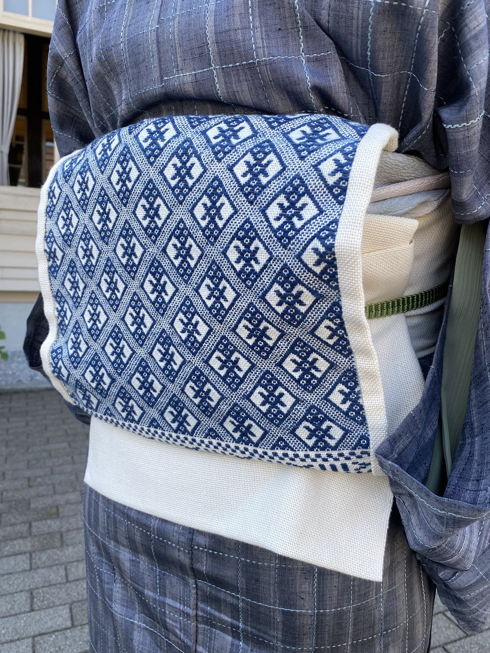 こぎん刺しの帯づくりをオリジナル綿こぎん布でトライしてくれました