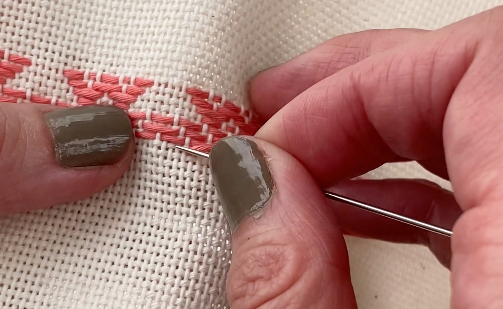 こぎん刺しや菱刺しは、もともと麻布に木綿糸で模様を刺していたはじまりがあり、布は麻布にこだわる愛好者が多いです。しかし、天然素材ゆえに組織繊維が不均一なので、布目の数え方に戸惑って初心者にとっては使いづらいところがあります。麻布に比べると比較的安価に均一な組織で耐久性のある布を作れるのが木綿です。私たちは布目の数えやすさと、手になじむ感触の良さにこだわり、製作時間を楽しめる布を目指して開発しました。