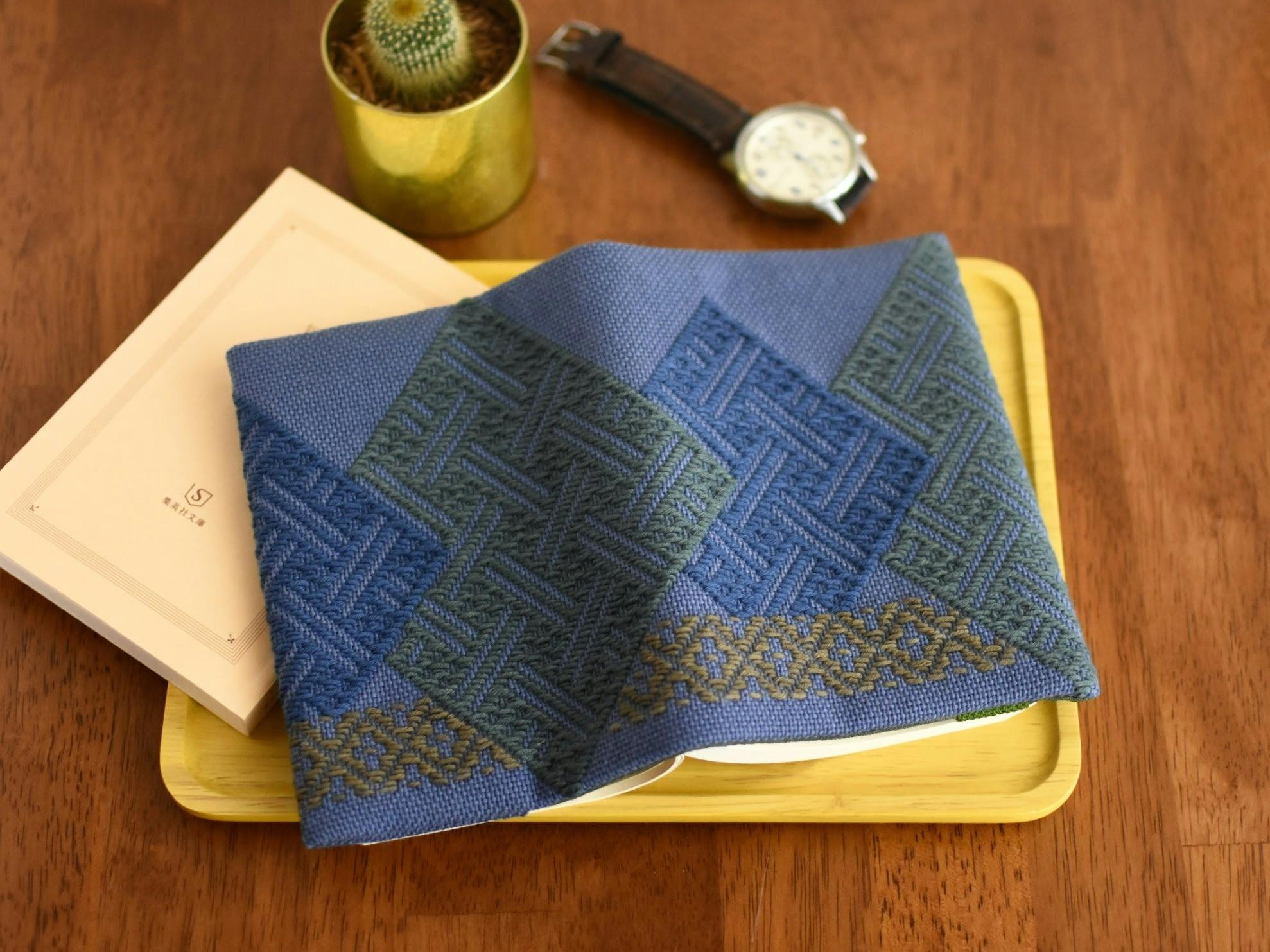 模様のデザインは複雑でありませんが、すべての面で異なる表情を見せてくれる、楽しいブックカバーになりました。手に触れる、柔らかく心地よい感触にも拘ったデザインです。こぎん刺し作家さとの坊さん独自の色使いは、伝統模様を使いながらも新鮮で、男女問わずご利用いただけます。読書の時間を大切にする方にぜひオススメです!