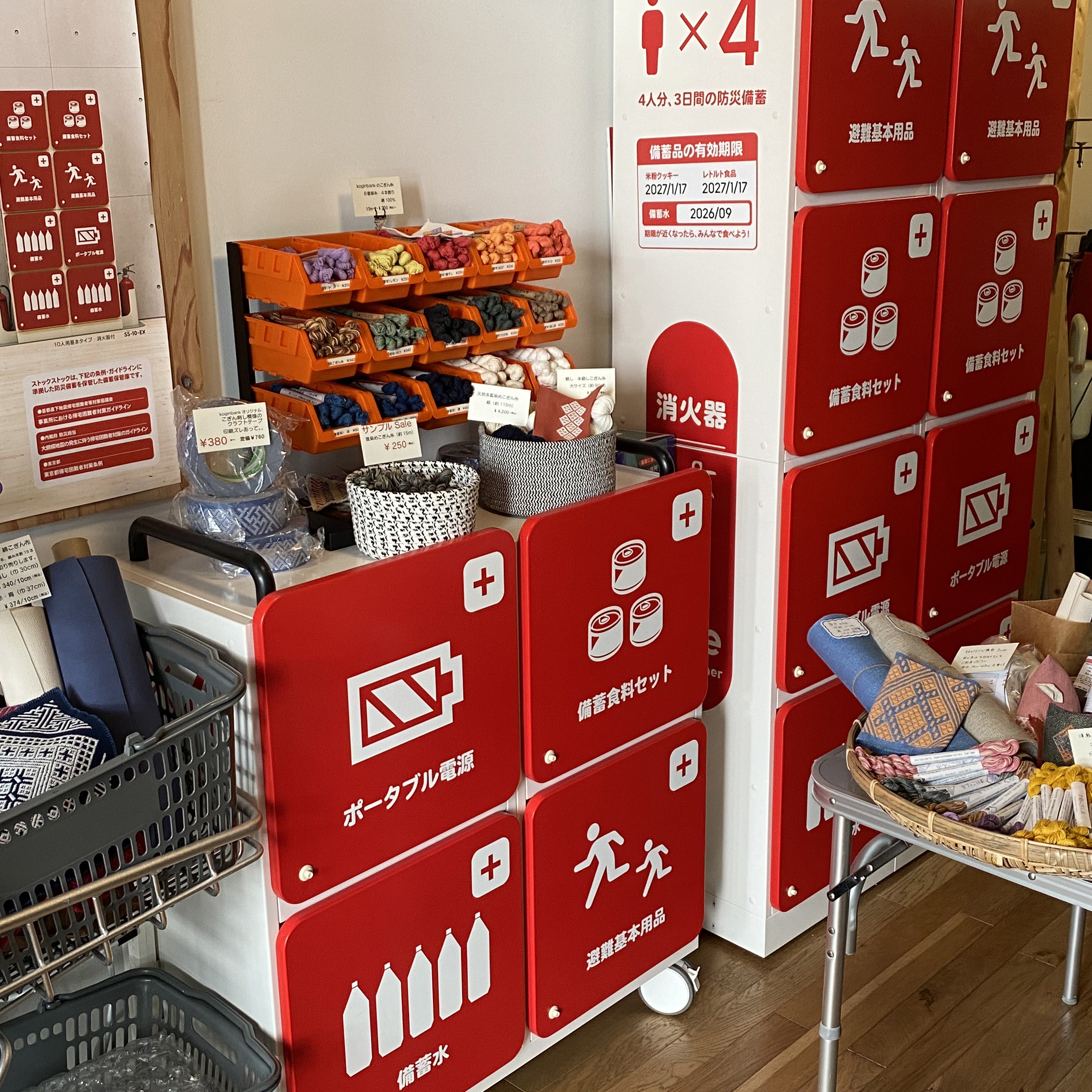 この防災備蓄庫に合わせて、こぎん刺しでつくる防災グッズも並べてみました。