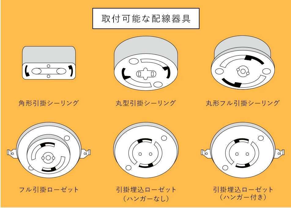 下記の配線器具があれば自身で簡単に設置できます。+受け側プラグでダクトレールにも設置可能です。