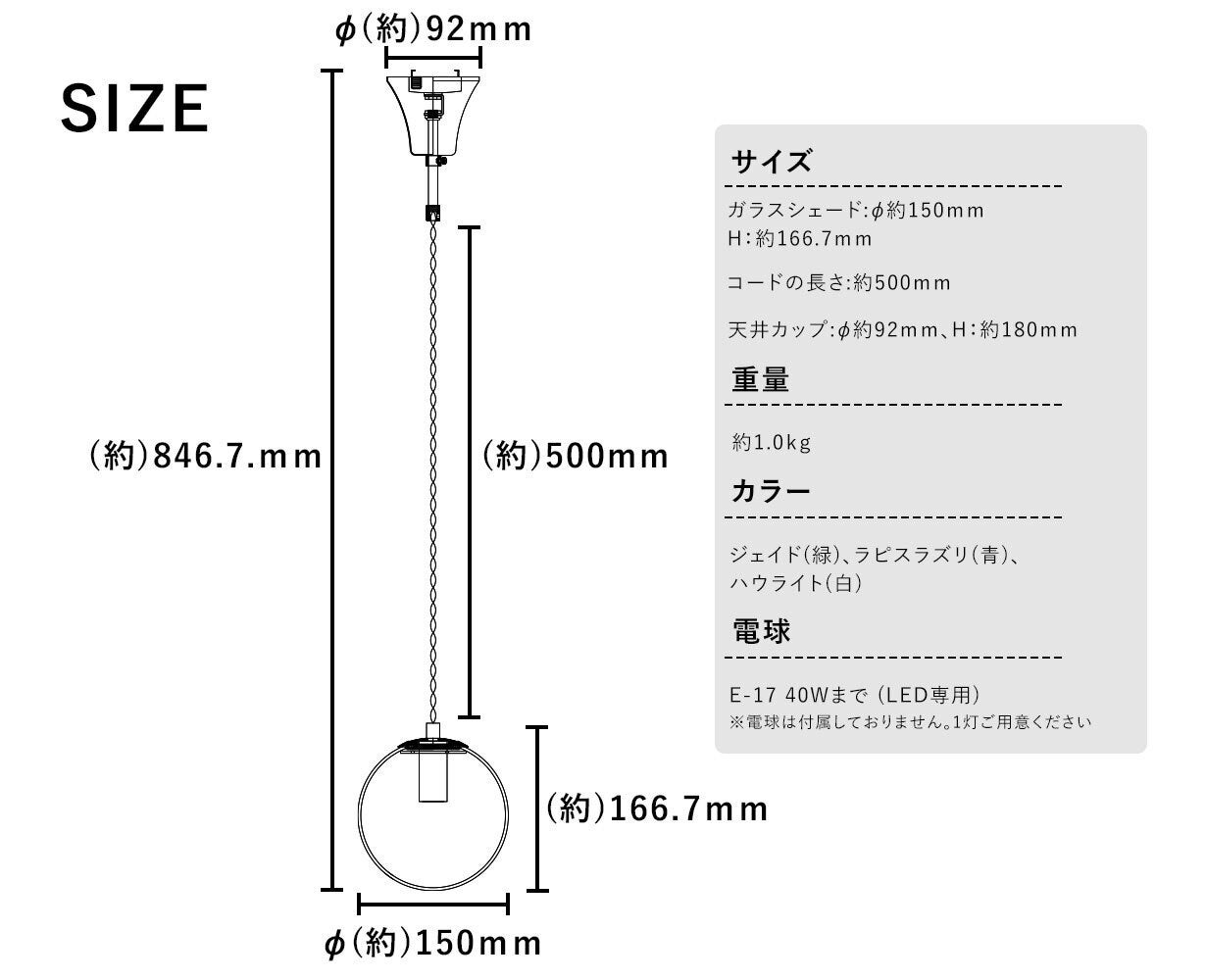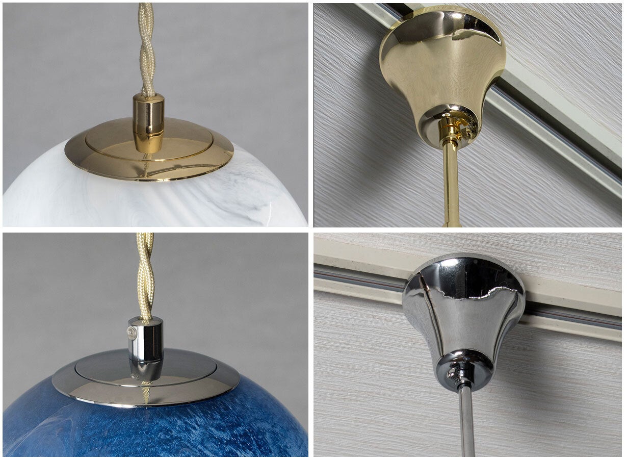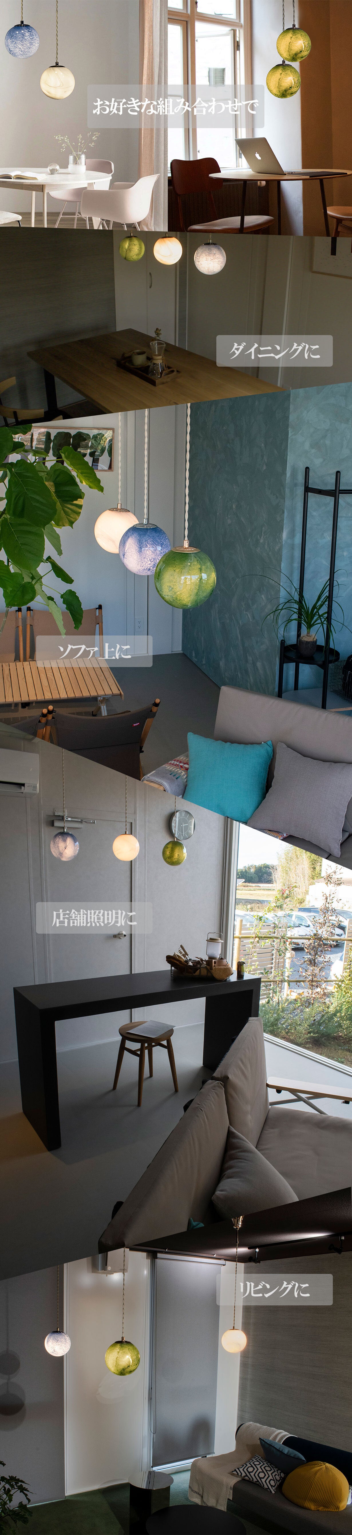 点灯消灯で別人のように変わる表情。消灯時は天然石、点灯時は惑星という二面性を持っている不思議なペンダントライトです。