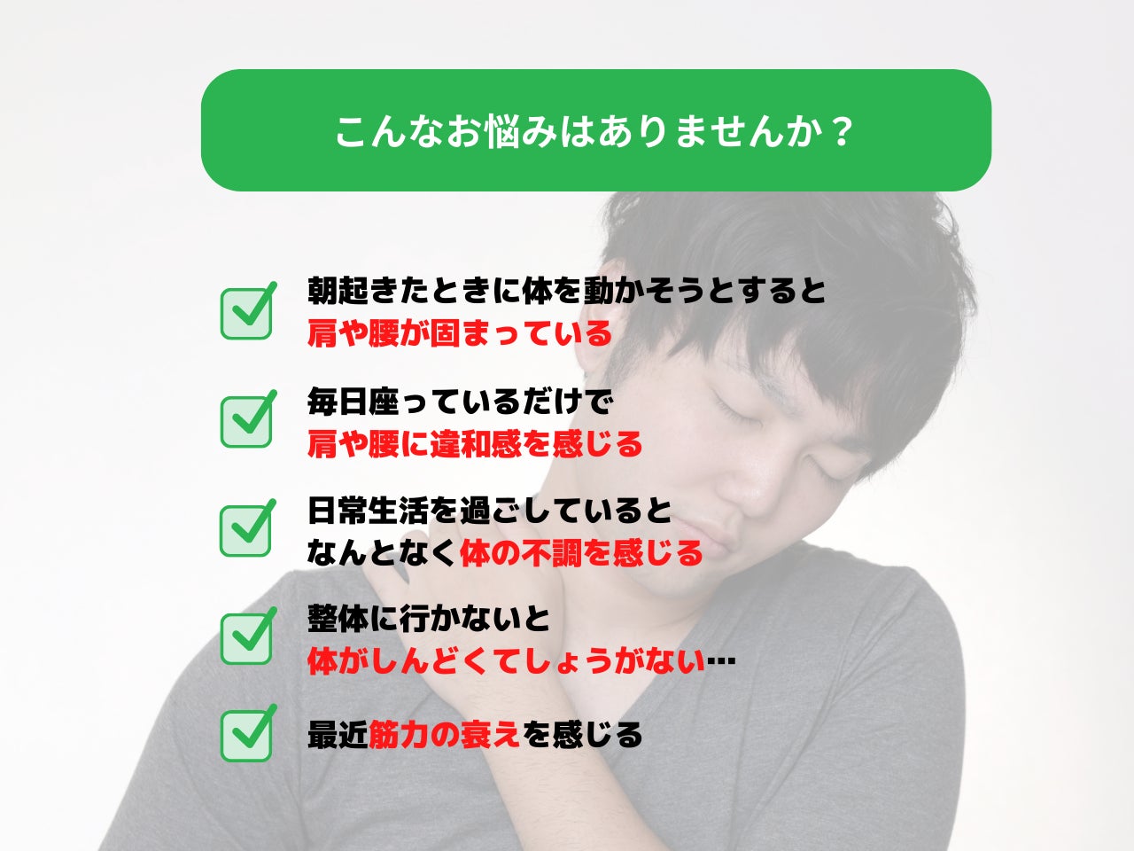 身体の痛みやコリに悩まされている方は非常に多いです。
