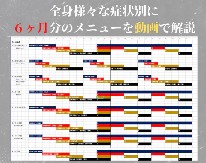 悩みを改善できる6ヶ月分の運動プログラムをご用意しています。