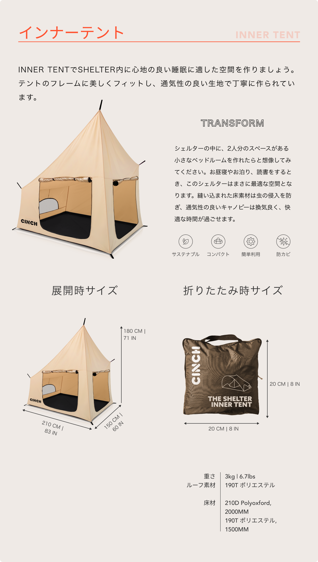 サポートメールアドレス:info@cinchpopuptents.com