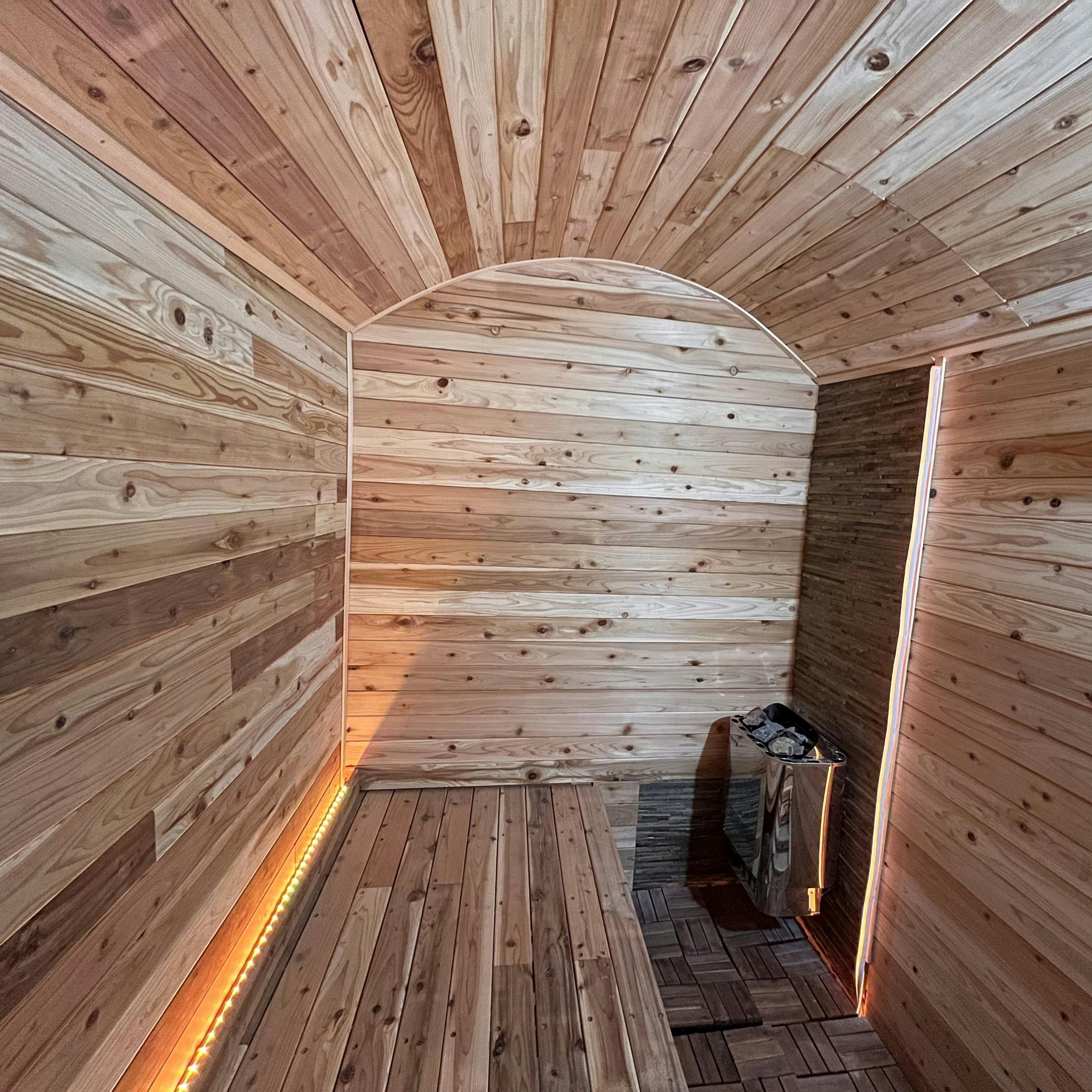 現在計画しているサウナは本格的なものとなり、テントサウナとはまた違った空間を体験していただけます。最近のサウナブームを踏まえて、様々な魅力を詰め込みました。熱心なサウナファンにも納得していただけるロウリュも可能な乾式サウナを設置しました。広い休憩スペースには酸素BOXやマッサージチェアもあり最後まで充実した時間をお過ごししていただけます。