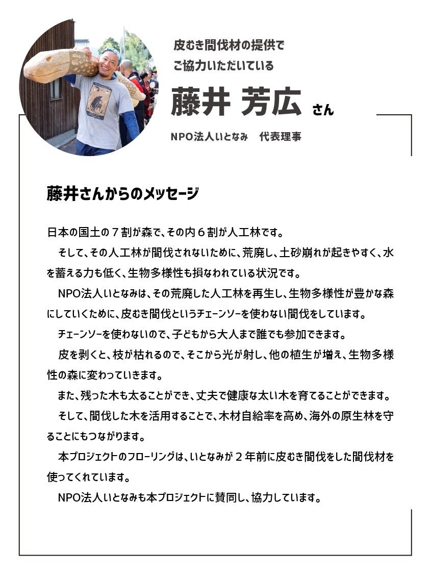「多くの人が出入りし、長く残る場所だからこそ、意味のある材を使い、教えていただいたことを広めたい」と思い、