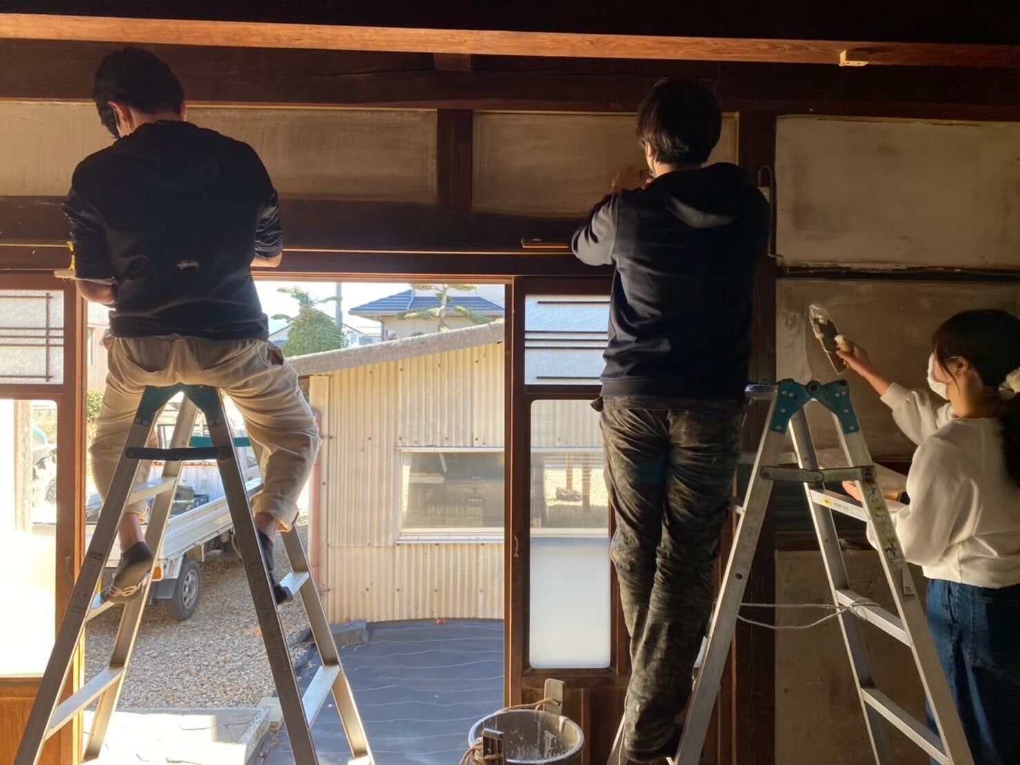 今、私たちは築150年の古民家の改装を行なっています。学生とこのまちに住まう人と旅人が交わるシェアハウス&ゲストハウスを開くべく、現在奮闘しているところです。