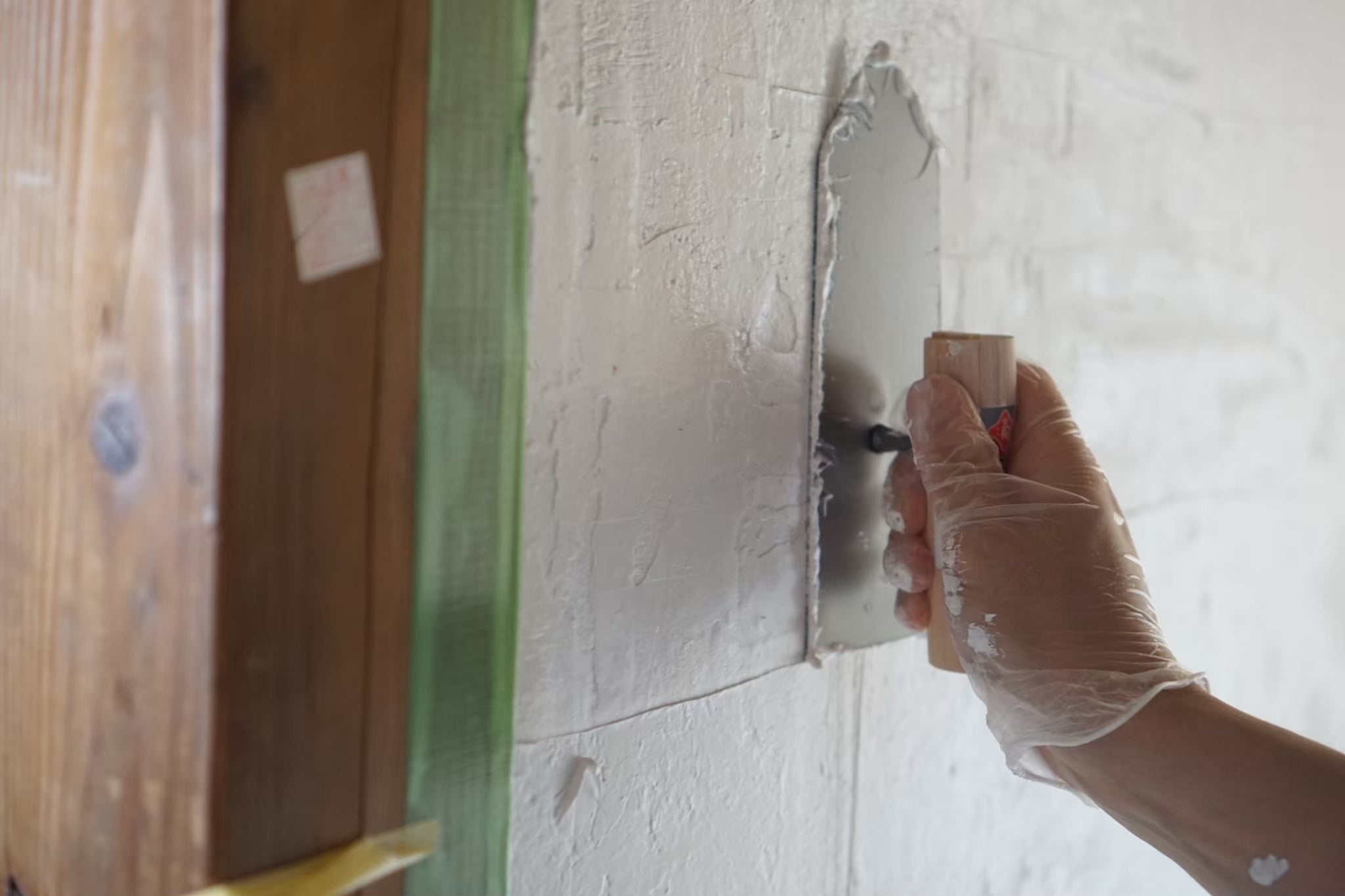 最近では、下地にアク止めをし、表面に膜を張ってから漆喰を塗るのが一般的です。