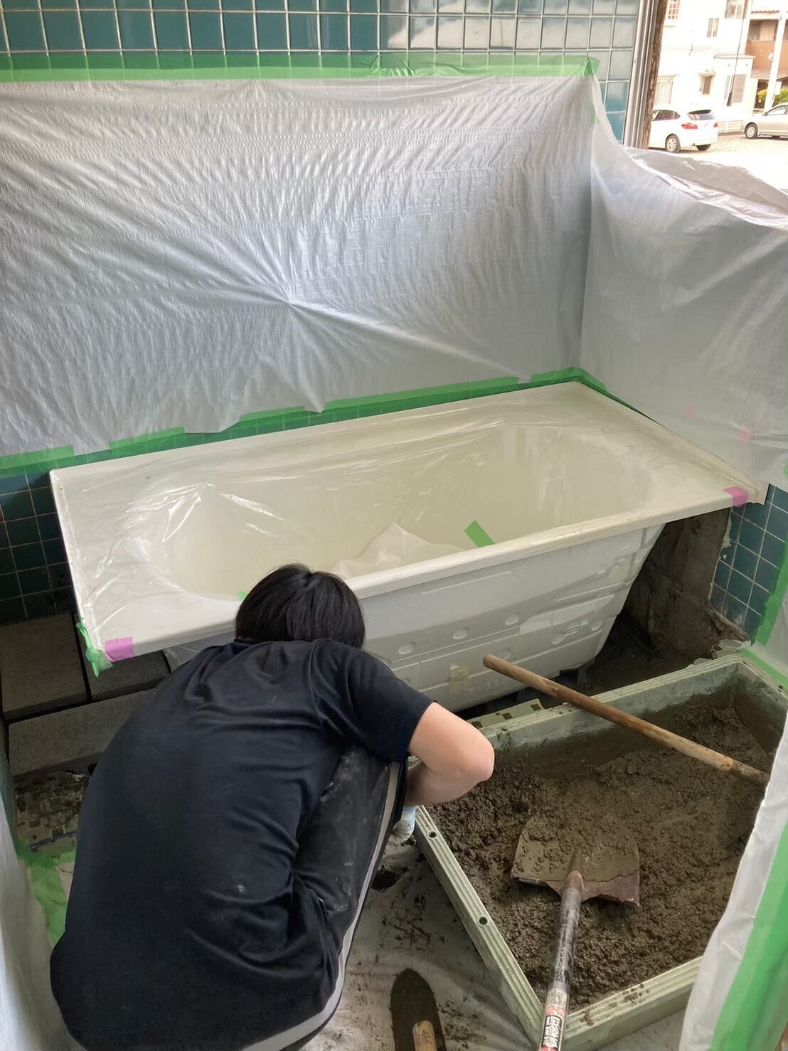 お風呂も既存のものを取り壊し、新しいものに交換し、セメントで周囲を固めました。