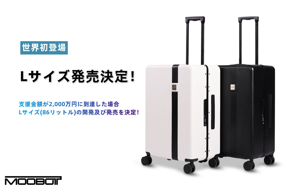 皆様いつも応援いただきありがとうございます。現在の支援金額はなんと600万円を突破しました!!今回のプロジェクト終了時に、支援金額が2,000万円に到達した場合、私たちはLサイズ(86リットル)の開発及び発売を考えております。また、MOOBOTアシストスーツケースは2023年3月までに、大手家電量販店において、店頭販売をする予定です。本サイトから購入いただく場合、最大の割引を受けることができます。引き続きMOOBOTをよろしくお願いいたします。私たちは皆様からいただいたご支援を力により高品質のスーツケースを開発していく所存です。MOOBOTチームスタッフ一同