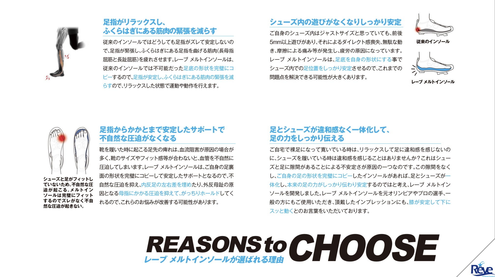 自転車シューズ、スキーブーツなど固定シューズ向けのフルカスタムインソールとして、「レーブメルトインソール 」