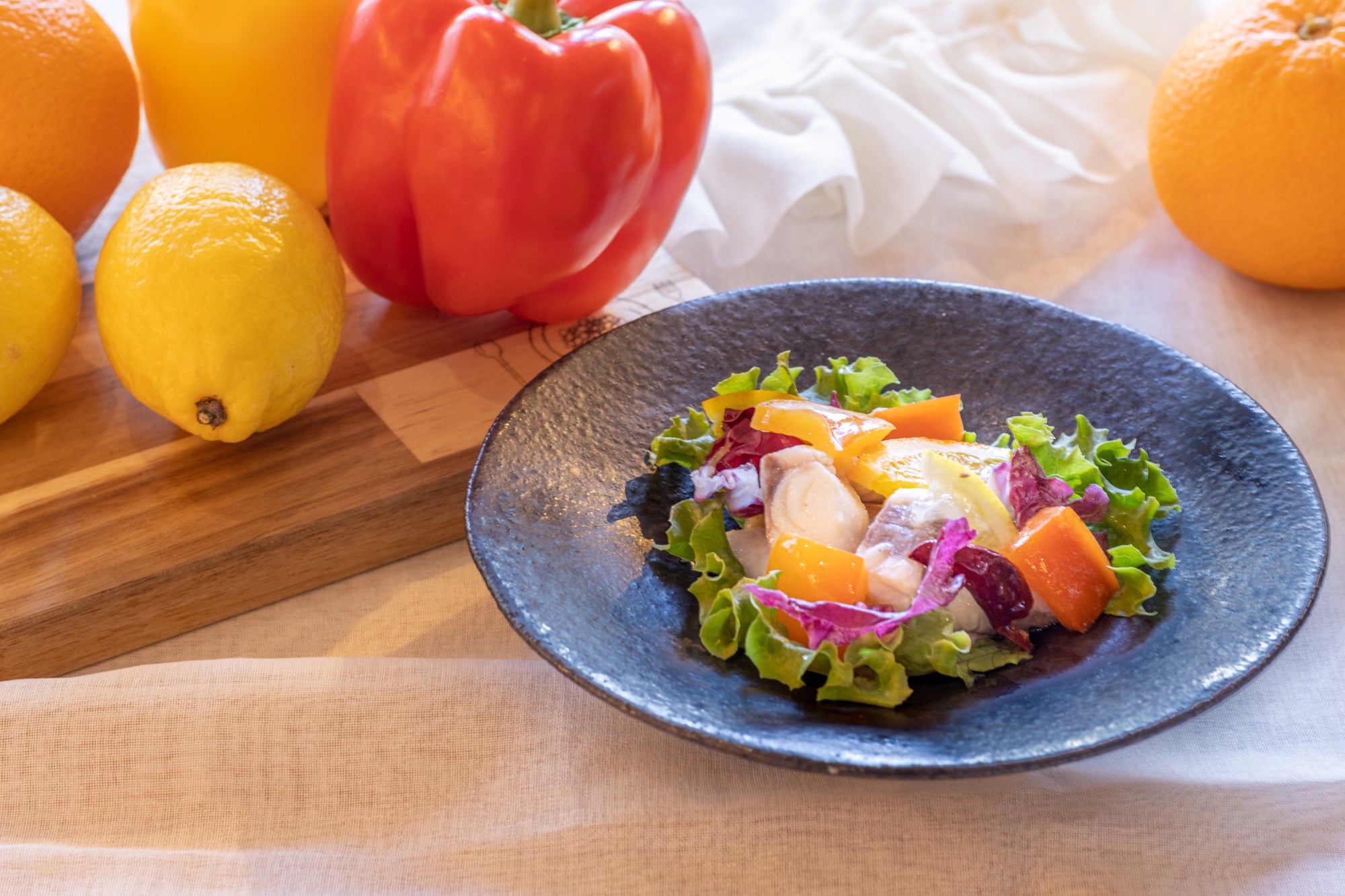 今回の撮影中にも、川端シェフの手でカラフルでおしゃれなお料理が、次々と出来上がって行く様子にワクワクしました。
