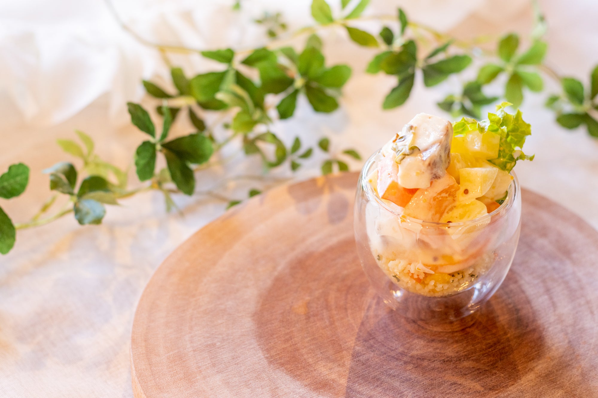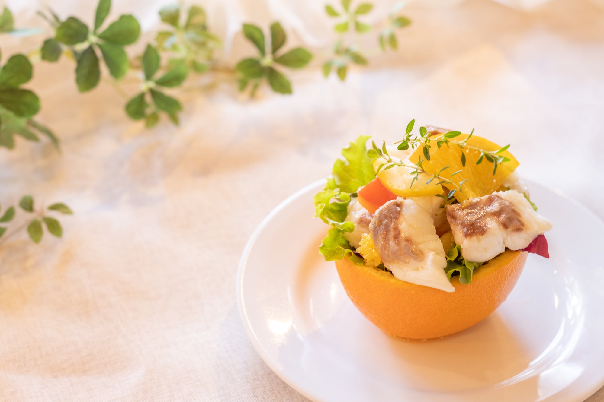 ↑オレンジを追加して盛り付けしたら、かわいいデザートサラダに。
