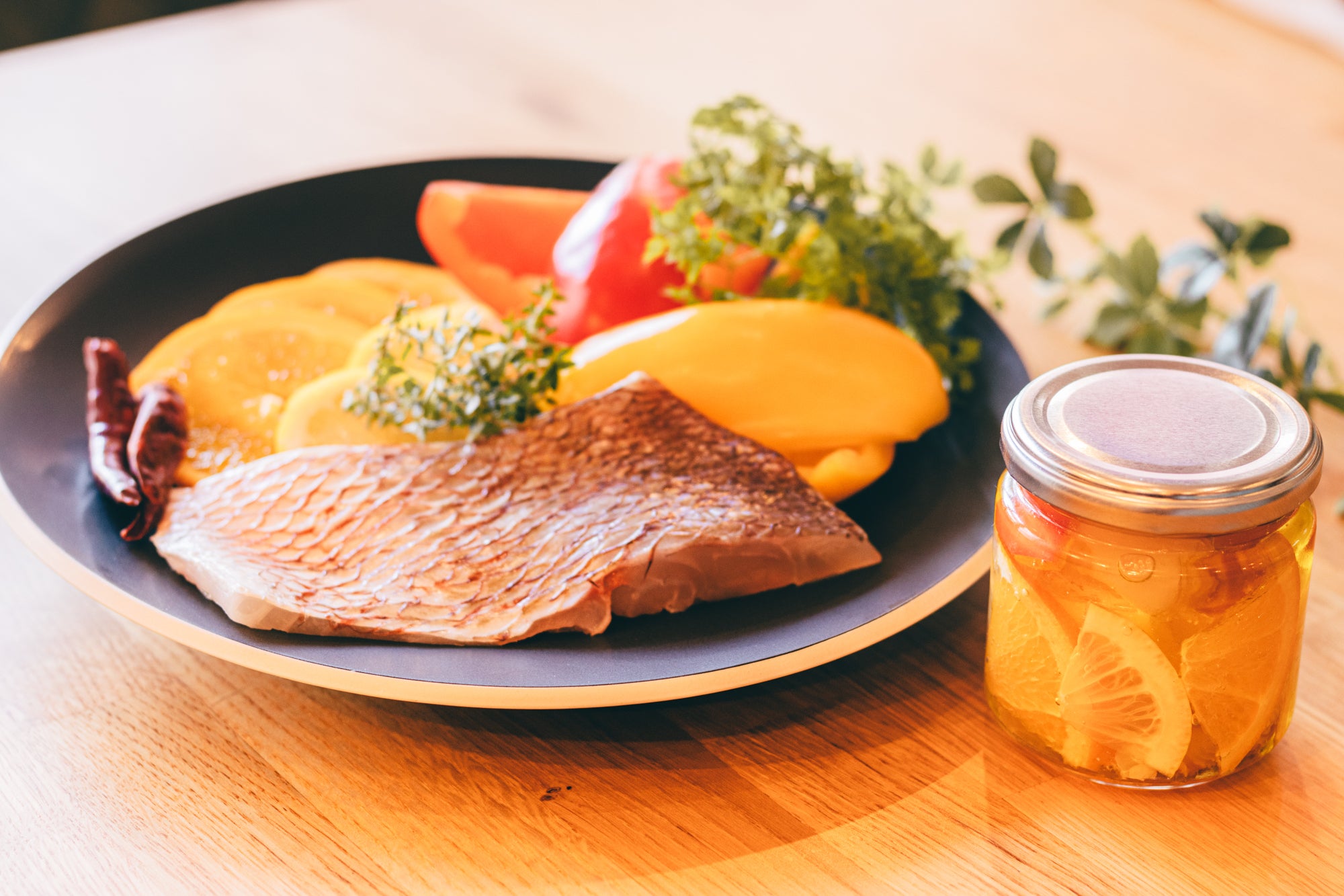 彩り野菜と鯛のコンフィを3つお届けします。