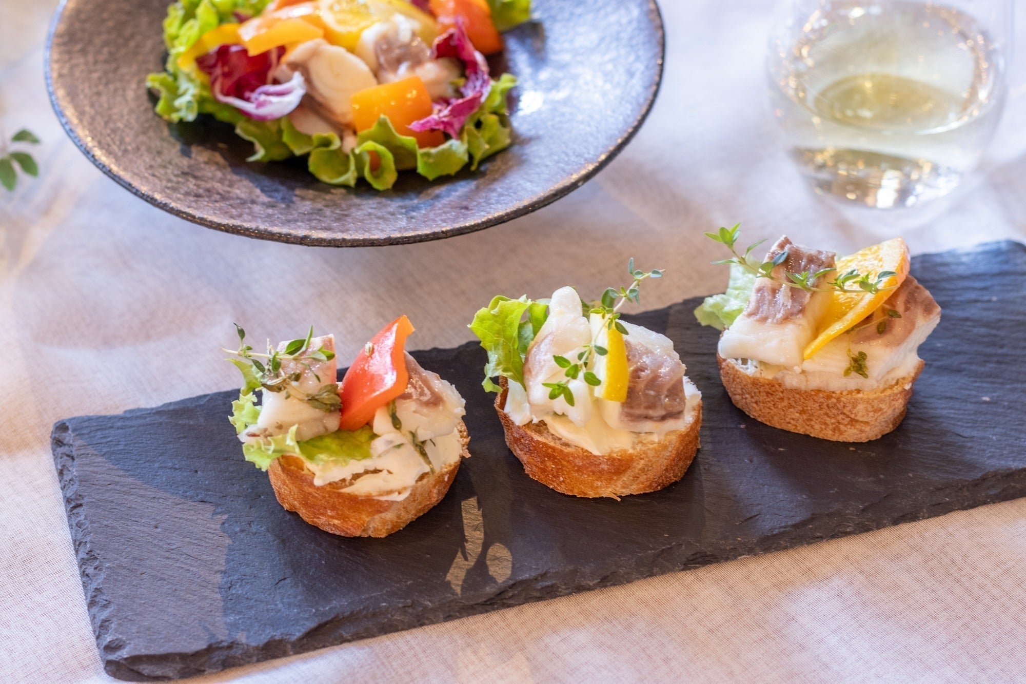 鯛のコンフィも残ったソースはバケットにつけたり、オイルパスタのソースとして使うことで、何通りも楽しんでいただけます。