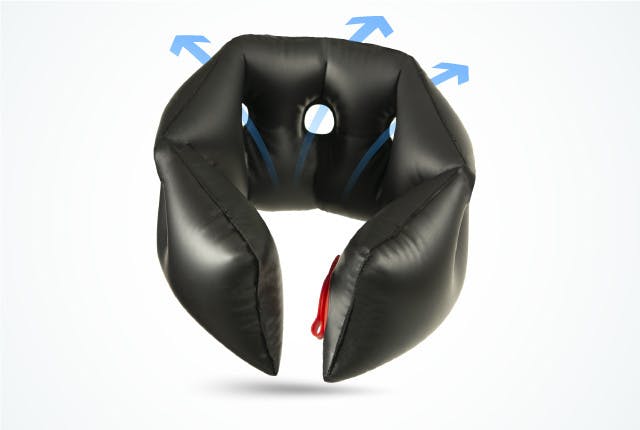 お好みの反発具合や座席タイプに合わせて空気量を調節しやすく、空気室が細かく区切られているので、首やあご下にも“しなやかにフィット”します。