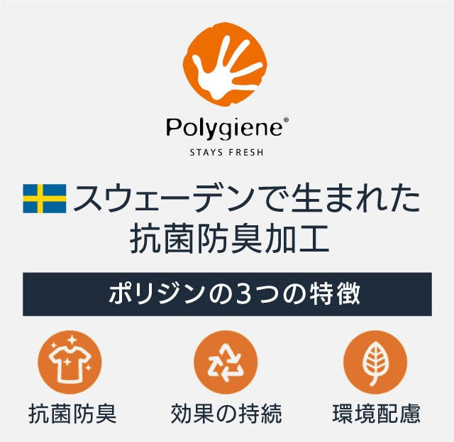 「Ovaer」には、同じくスウェーデンにあるポリジン社で開発された抗菌防臭テクノロジー「Polygiene BioStatic™️(ポリジン・バイオスタティック)」が新たに施されました(JIS L 1902:2015)。