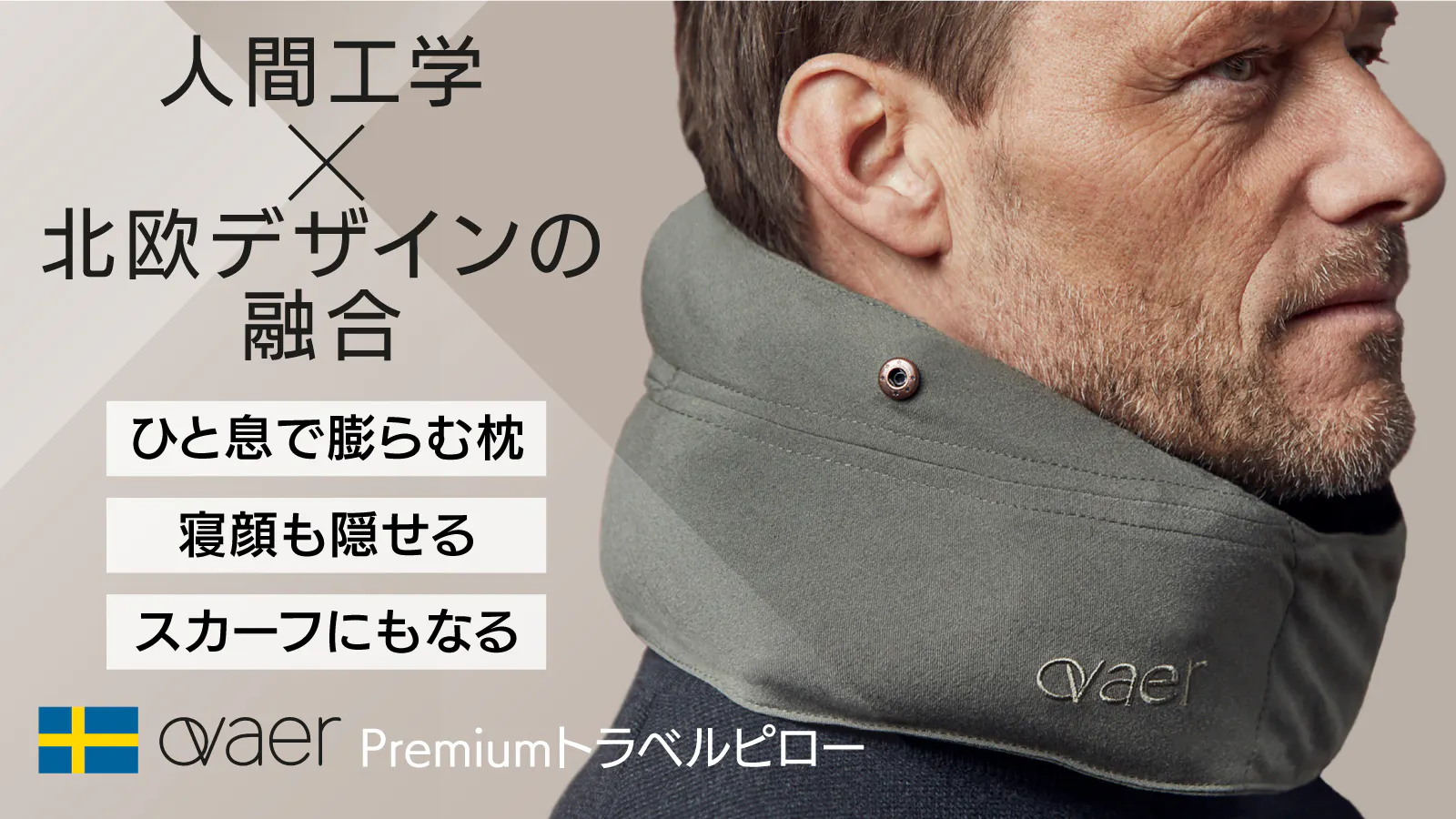 「人間工学に基づく高い機能性」と「北欧デザインに基づくファッション性」を兼ね備えた、プレミアムなスウェーデン発のネックピロー「Ovaer(オーバー)」。