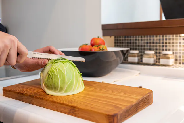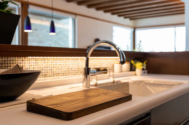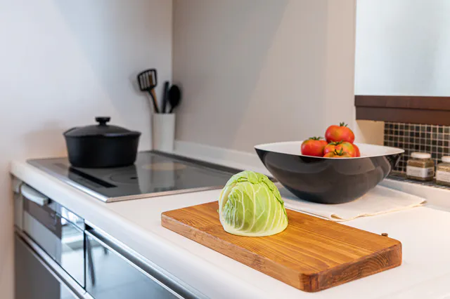 淡黄色の上品な色合いで、きめが細かく美しい木肌。癒されるような自然美がぬくもりを与えキッチンを明るく彩ります。能登ヒバのまな板のおかげで、キッチンが明るく、調理が楽しくなります。