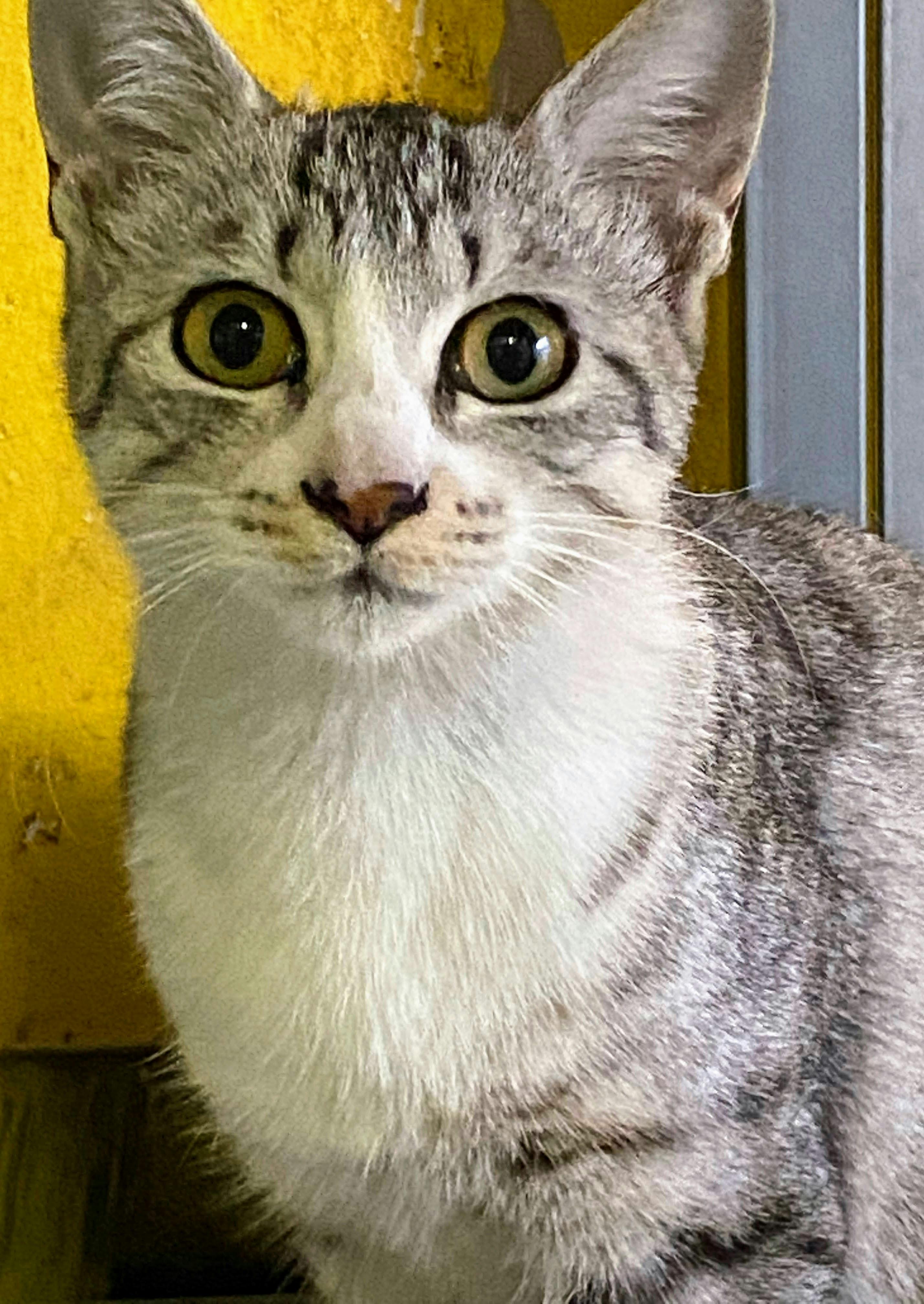写真の子は三匹のうちのグレーの縞の女の子。サバトラの色とも少し違います。