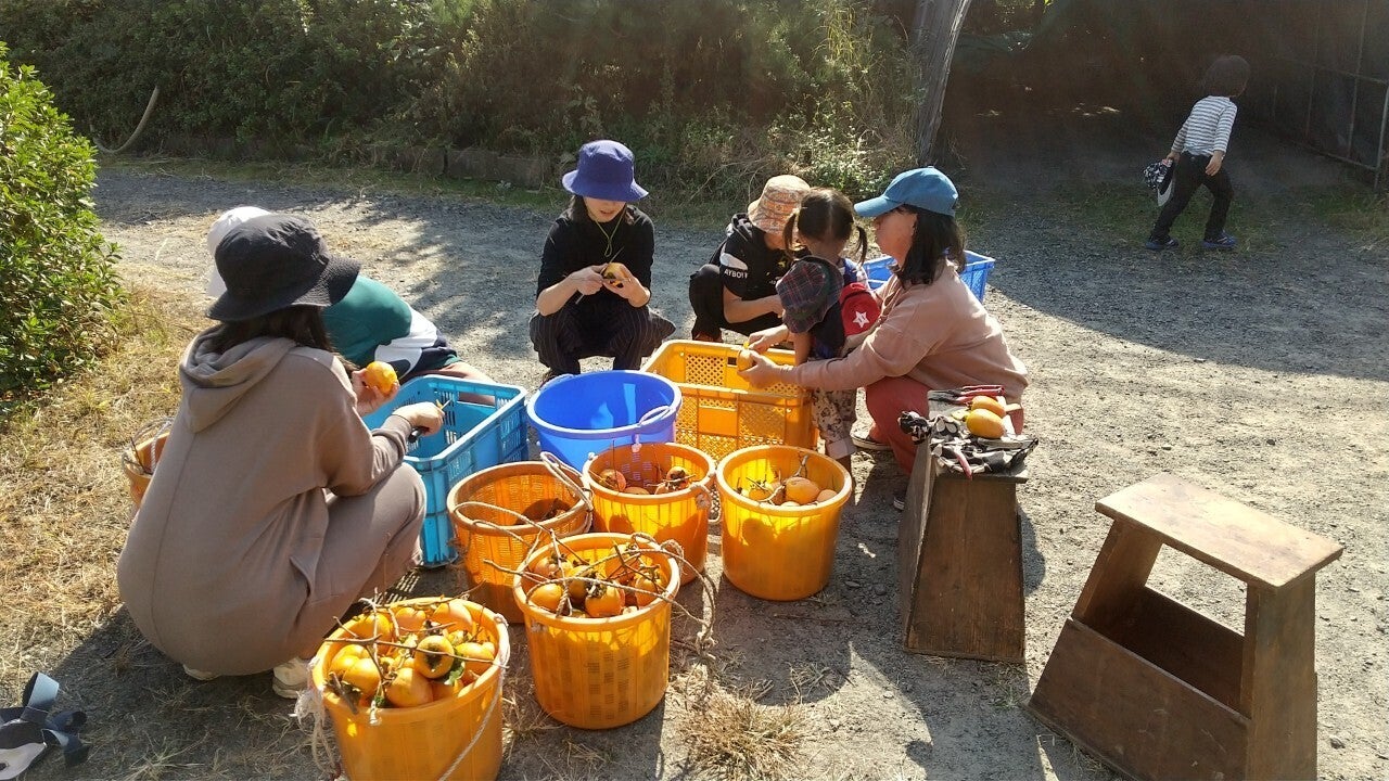 11月10日の親子活動で、リターン品でもある干柿づくりを参加者と一緒に行いました。