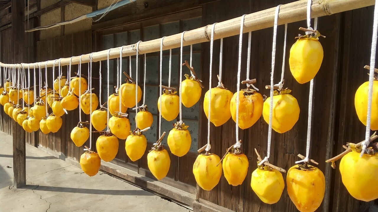 柿を採ることから始めて、皮むき、湯通し、そして干しました。