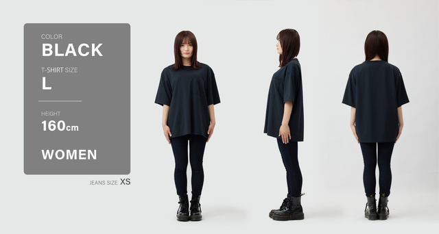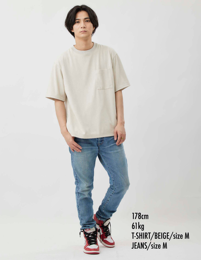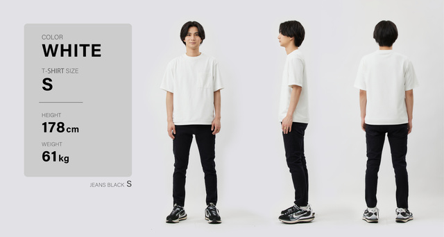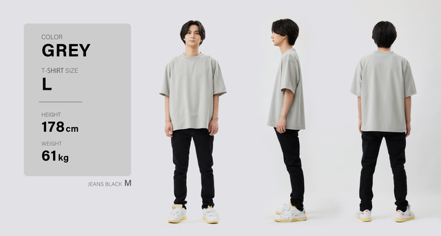 過剰なオーバーサイズはスタイルを悪く見せてしまうので、身幅や肩幅にはゆとりを入れつつも、着丈はコンパクトにすることで、全体としてスタイルが良く見える黄金バランスになるように細かくサイズ調整しています。