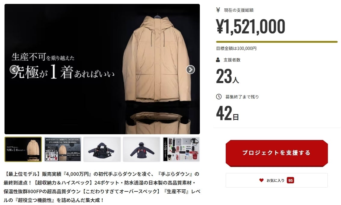 さて今回のプロジェクトも『残り5日』、そして98着限定の商品は『残り23着』のみとなりました。