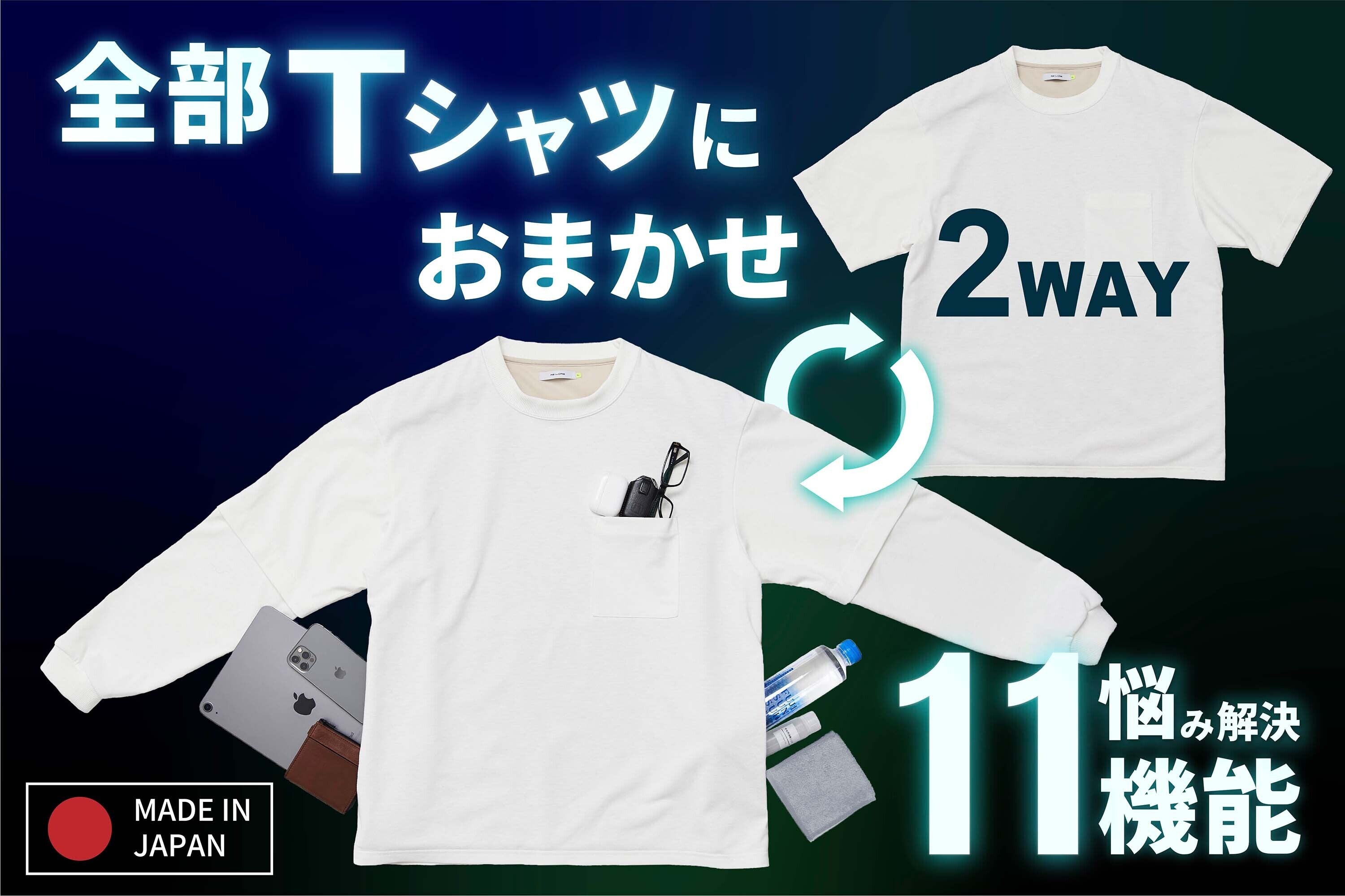 Tシャツなのに、手ぶら超撥水なのに、吸水速乾