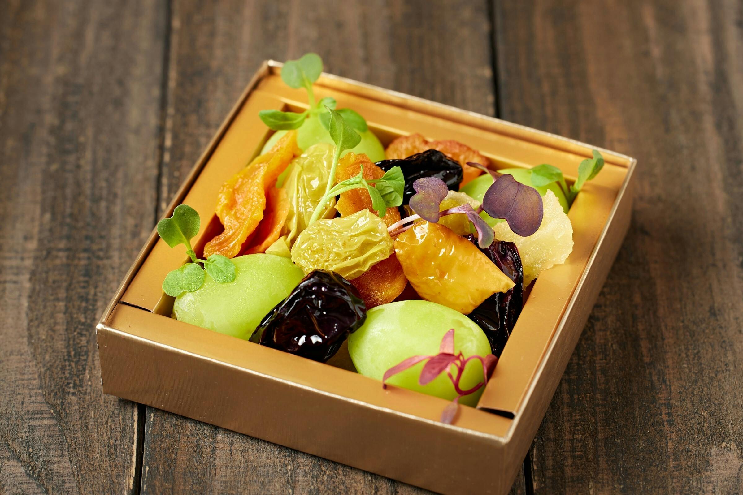 ※写真はイメージです。実際の箱と中身(ドライフルーツ)は季節によって異なります。