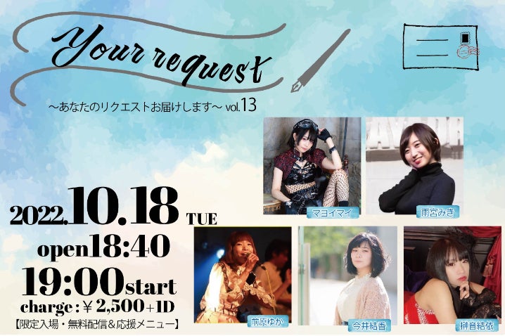 ☆リクエスト曲をあなたのためだけに歌います権! ¥10,000【各限定1名!】