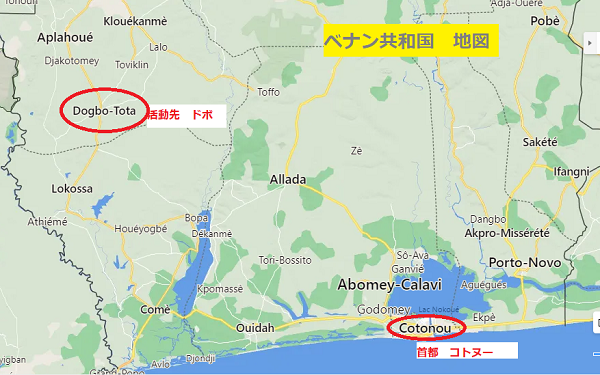 ベナン西部にあるクッフォ県、ドボ市で、都市部コトヌーからは車で2時間ほど離れた町です。
