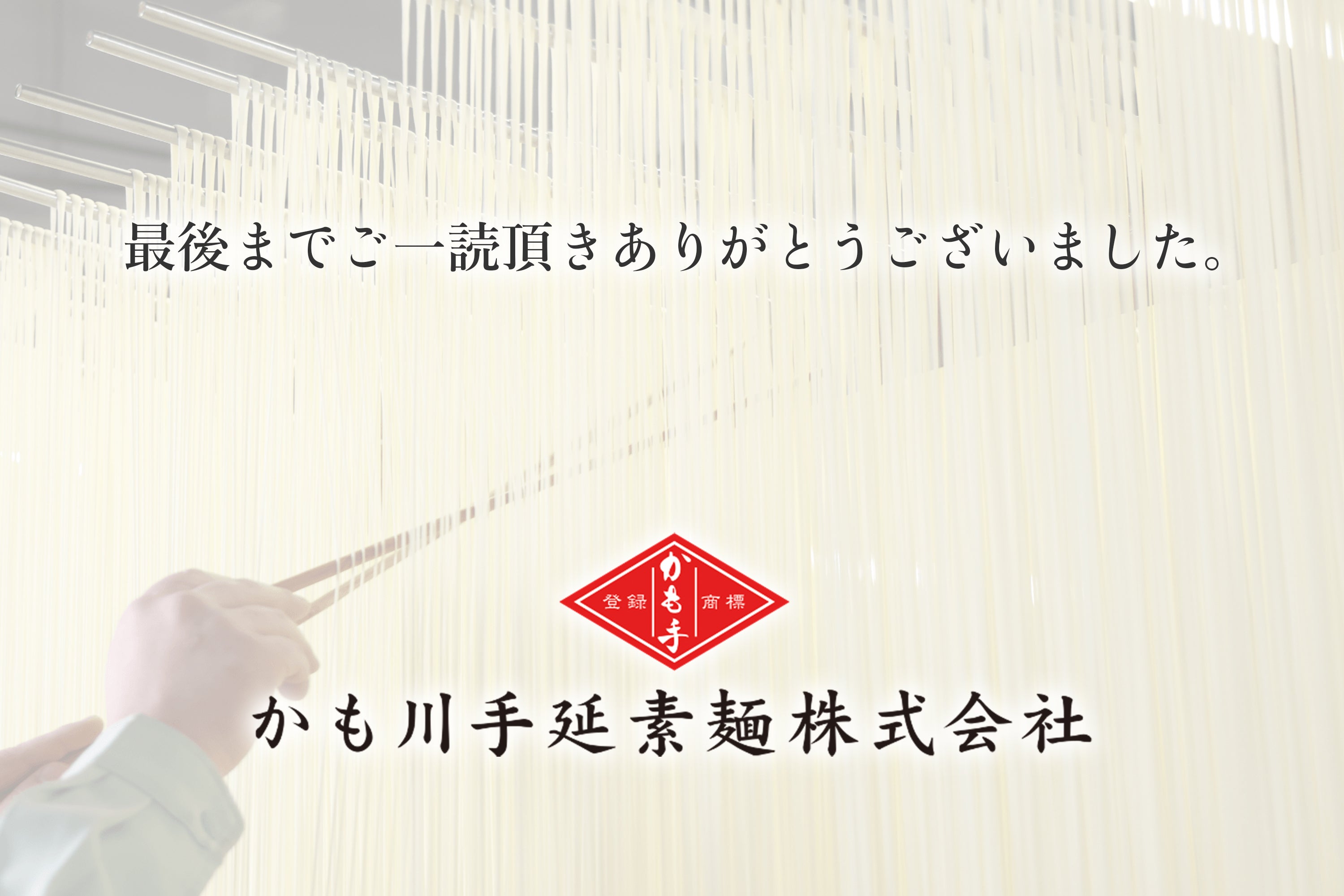 かも川手延素麺より皆様へ!vol.22『かも川手延素麺、麺師藤原より心からの感謝を込めて』