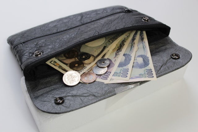 お札と硬貨をバサッ!とポケットに入れて終了!あとは自動で紙幣と硬貨を仕分けて別々のポケットに収納してくれます!