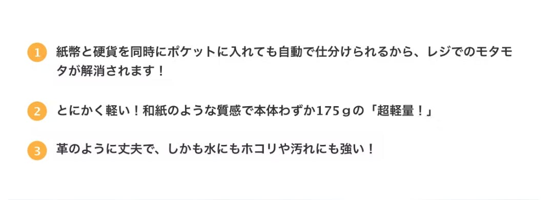 そんな時お札も領収書もコインも一度に同じポケットに入れるだけで、コインを自動で仕分けできると、スマートに「サッと会計」できるから行列のお客さんに気を使うこともありません。