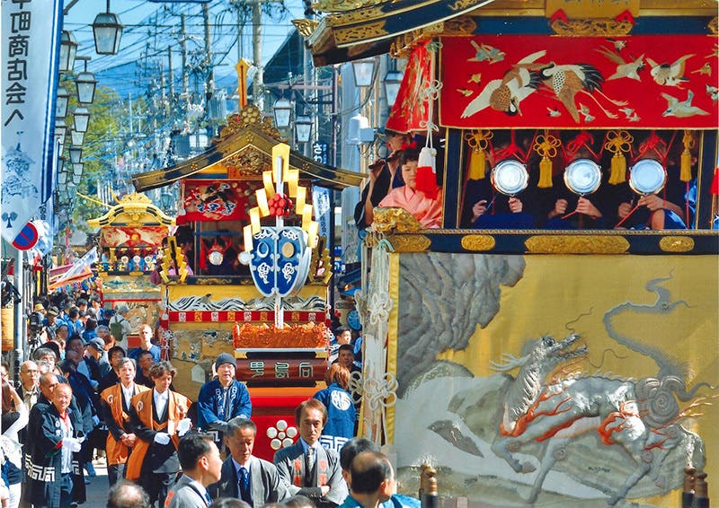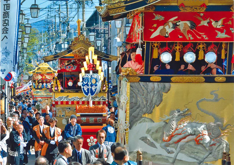 そして後に続くダンジリ行列。9つの町による絢爛豪華なダンジリが、優雅な祭囃子を奏でながら進む姿は圧巻です。
