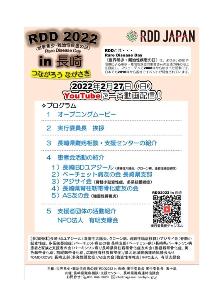下記は、新型コロナウイルスの後遺症で苦しんでおられる親子の方が、NPO法人有明支縁会の活動を応援したいと作ってくださった動画です。 2月の「正解希少・難治性疾患の日」に合わせて作っていただいたものです。