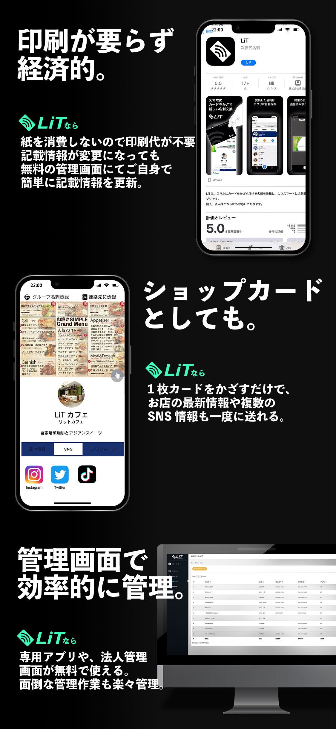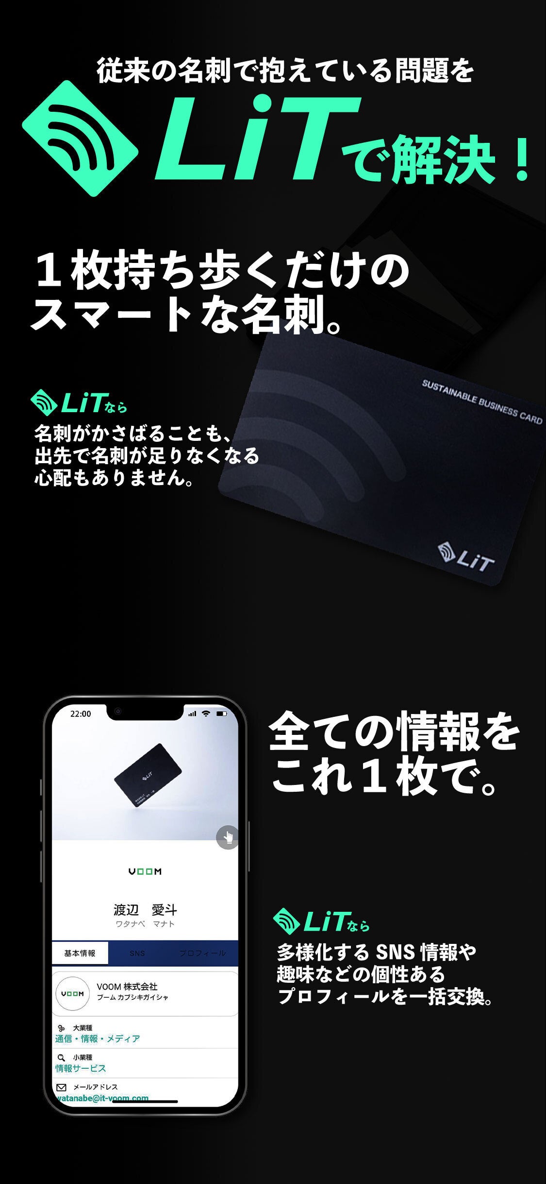 紙資源を使わないサスティナブルな名刺として誕生したLiT Cardは、