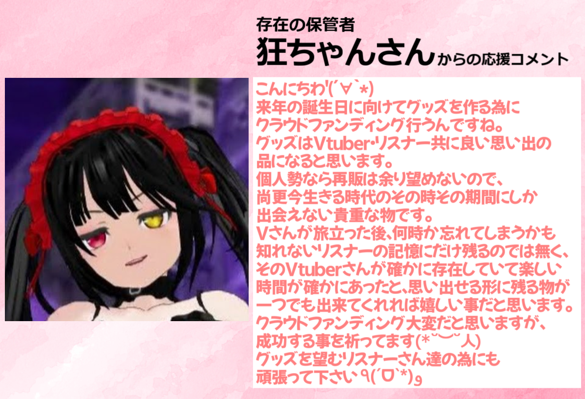 また、他のVTuberの方にクラウドファンディングでの支援をお願いしていきます!