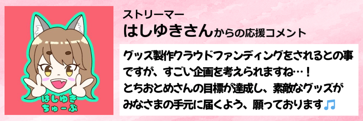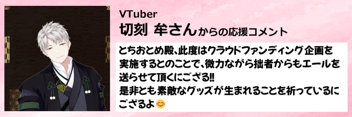 誕生日記念グッズ製作のためのクラウドファンディングではありますが、今回のプロジェクトごと、とちめいと(視聴者さん)や支援者の方と楽しんでいけたらと思っています!