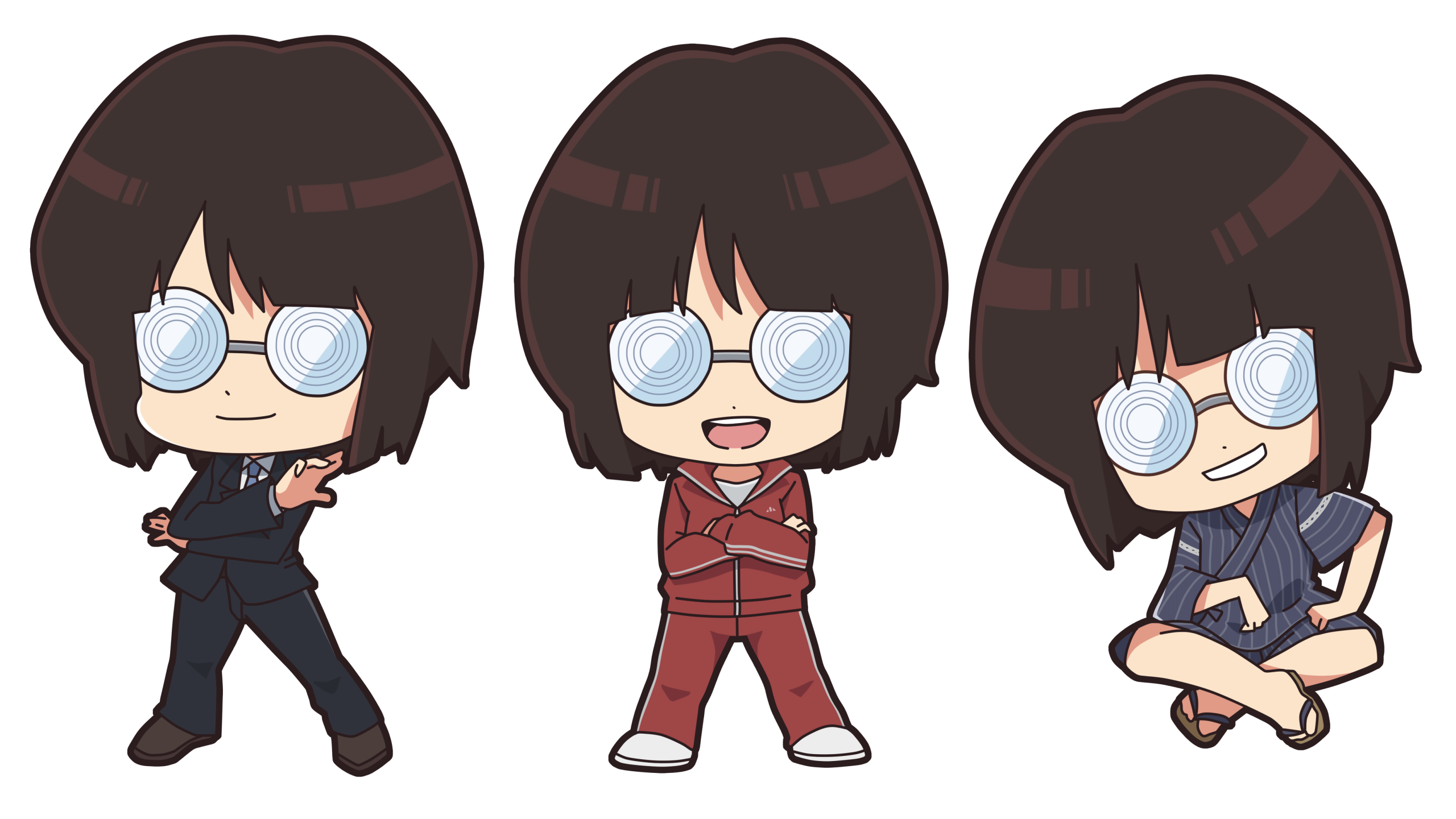 ・アクリルキーホルダー、缶バッジ、アクリルスタンドのミニキャラ3種は共通のイラストを使用します。