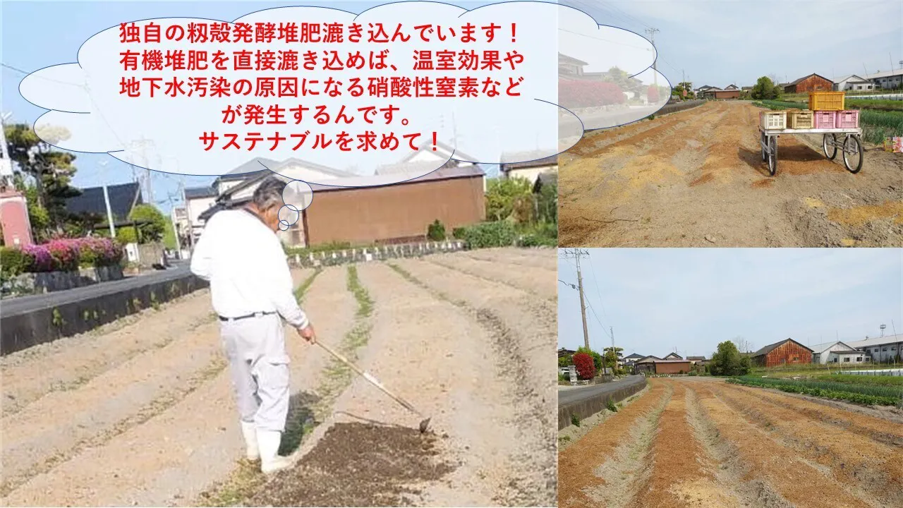 化学肥料は使用せず、堆肥等有機質肥料は直接土壌投入せず再発酵させて施用することにより、二酸化炭素の約300倍の温室効果がある亜酸化窒素(N2O)の排出を抑制している。