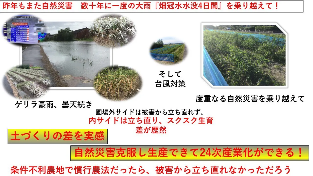「雨季の大雨冠水被害を回避し、連作障害を克服するため、冬季でも栽培でき、夏場にきちんと乳酸菌液による太陽熱土壌消毒ができるハウス栽培にも取り組み規模拡大していきたい!」