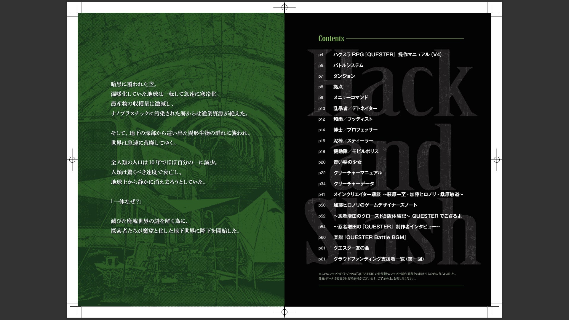 コンセプトガイドブックは『QUESTER』の世界観・コンセプト・制作過程をお伝えするために作りました。
