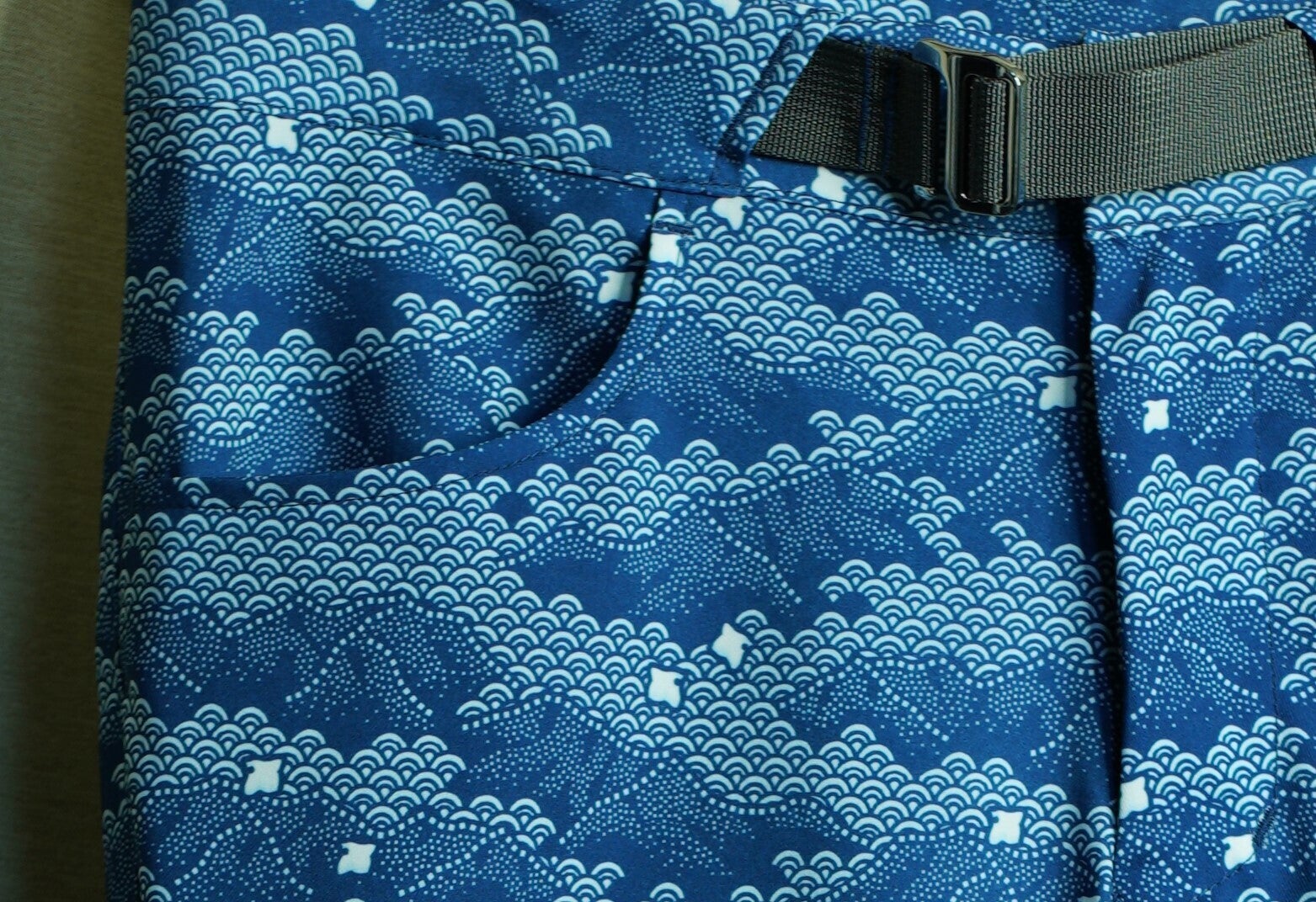 当社”infinity peaks(インフィニティ ピークス)”は登山とクライミング用品を作っているメーカーなので、もんぺのお洒落さ、かっこよさだけでなく、クライミングでの無茶な動きにも対応できるようにデザインしています