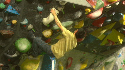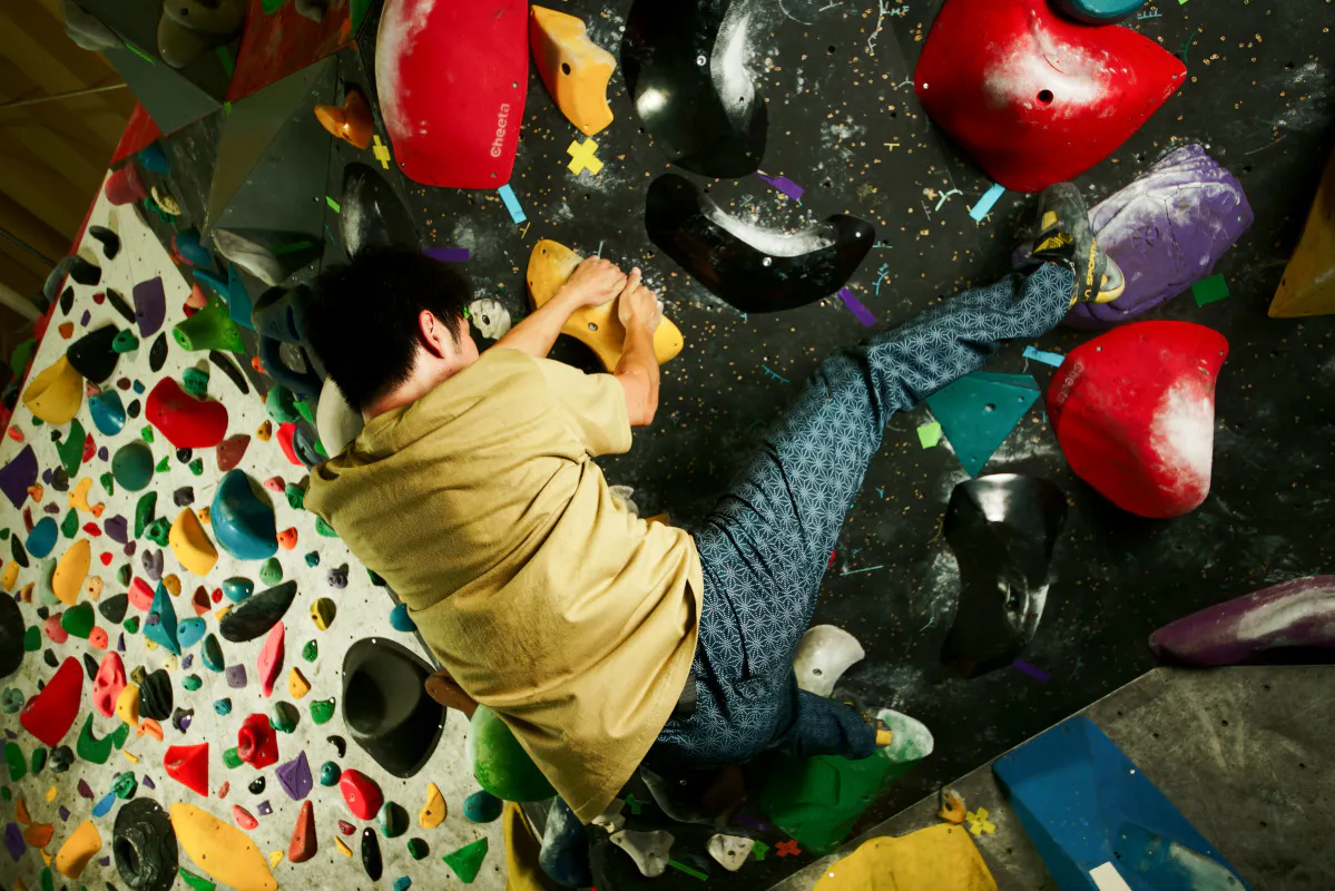 ①クライミングの動きにも対応する人間工学デザイン
