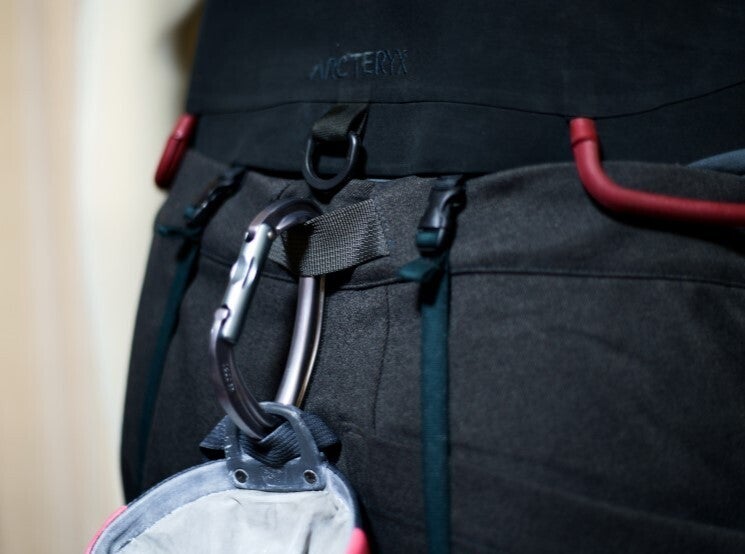 *クライミングの際にカラビナでチョークバッグを取り付けることができます